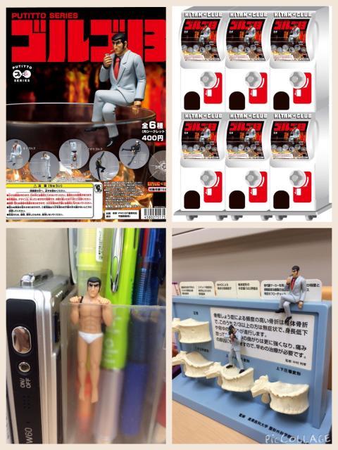 いつの間にか冬を感じさせる肌寒い日々を迎えています。今年も残すところ2ヶ月ちょい。ほんとに時間が経つのが早いものです。さて、ほとんどの男性の方なら、喫茶店や定食屋、はたまた焼き鳥屋や居酒屋などで1度は読んだ事があるあの伝説のスナイパー、ゴルゴ13!そのフィギュアがかなりいけてるんです。カプセル自販機で1個400円と値は張りますが、精巧に作られていて、また表情やポーズ、佇まいがリアルでお茶目で癒されます。私もいつも3人のゴルゴに狙われながら診療しております。今年中に全種類手に入れたいな〜。